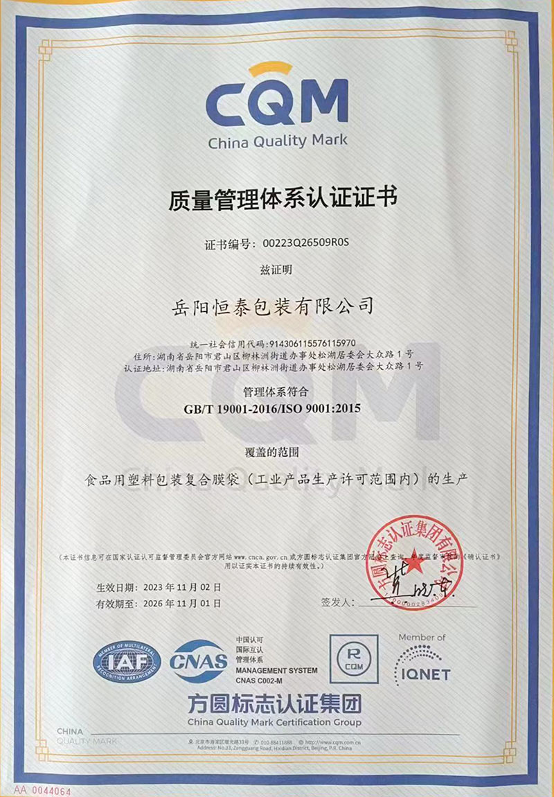 質(zhì)量管理體系認證證書(shū)